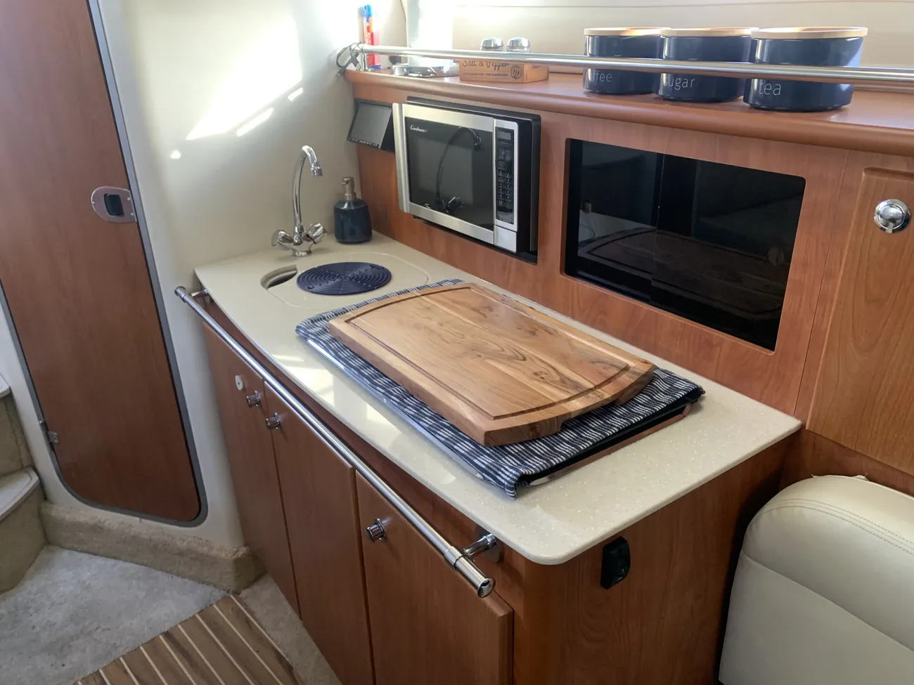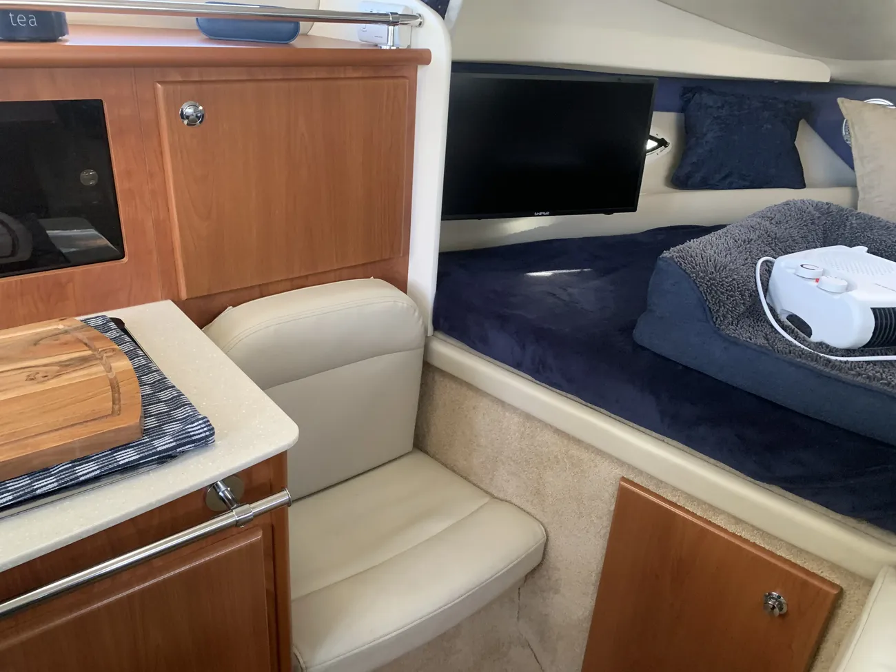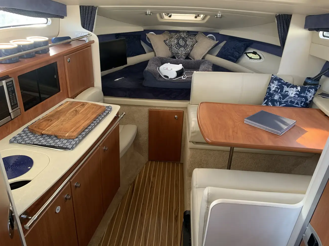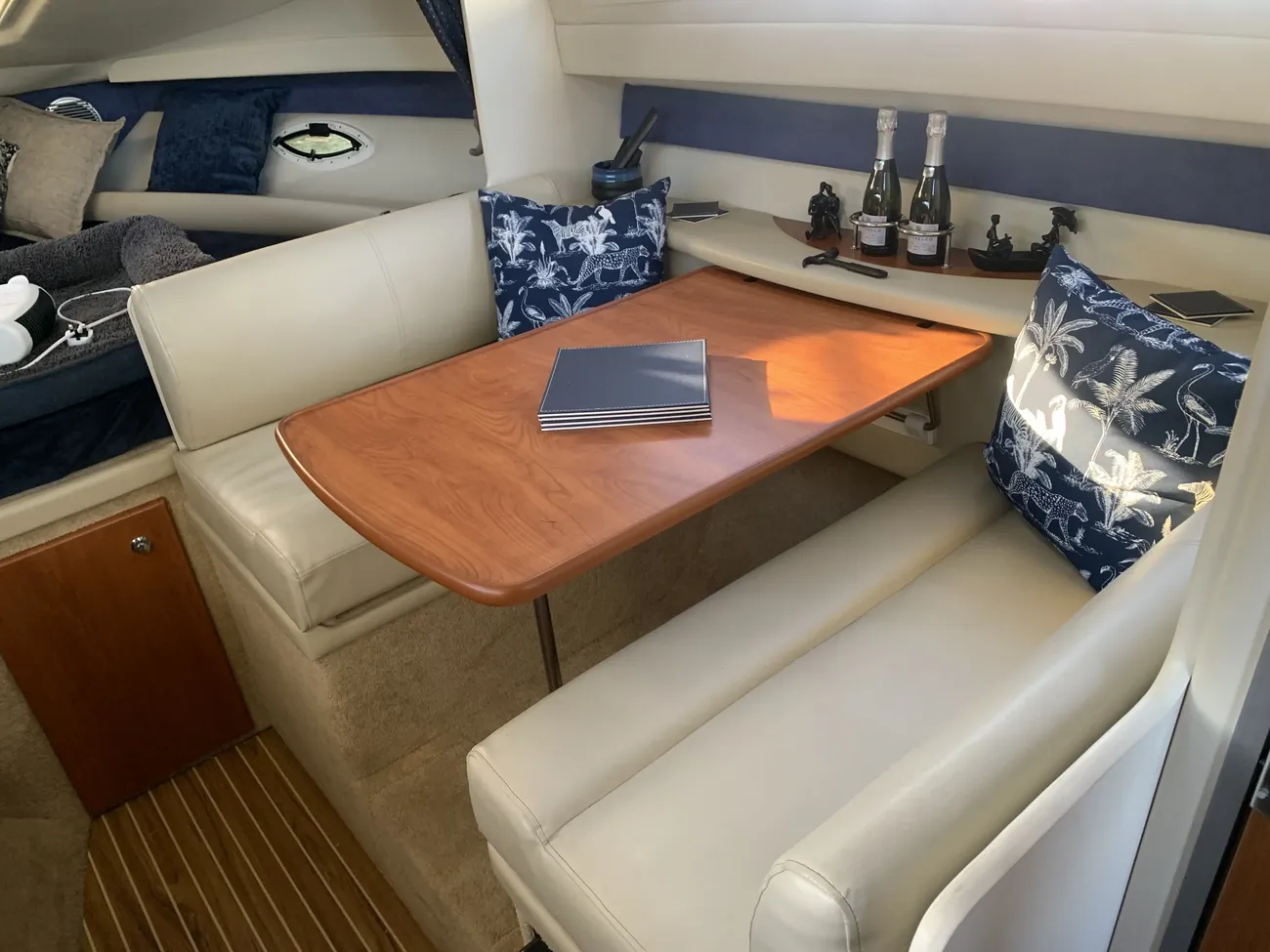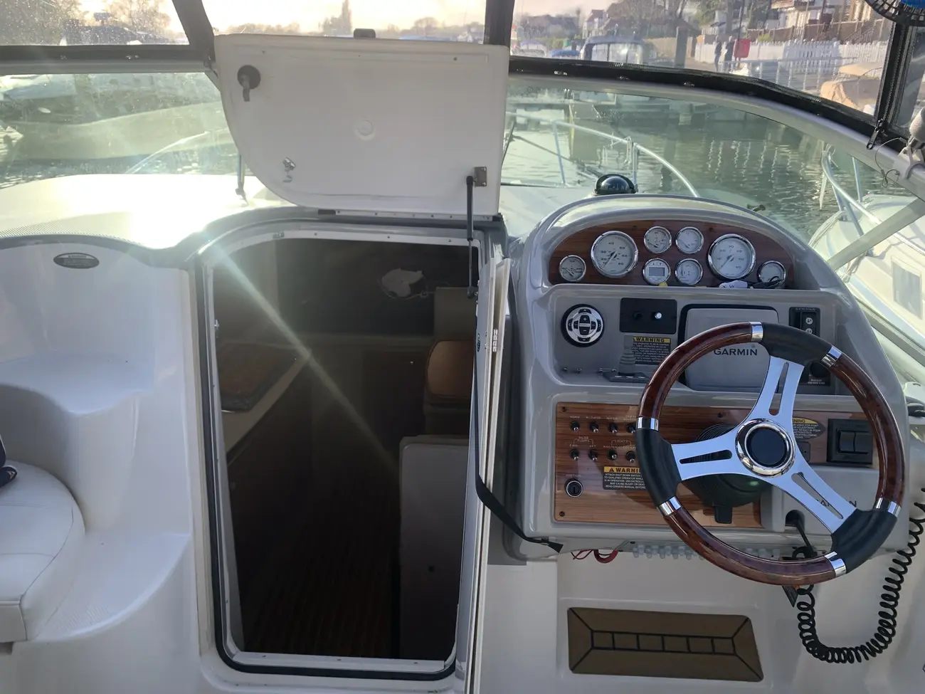Fitted with a MerCruiser 350 Mag petrol engine on Bravo drive for comfortable cruising. Recently fitted with new calorifier, new steering wheel, new water pump and more. EA reg until Dec 2026. Rare mooring at Bourne End Marina available at separate negotiation.