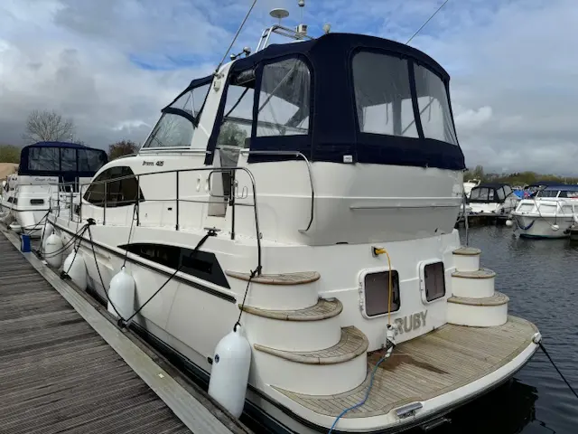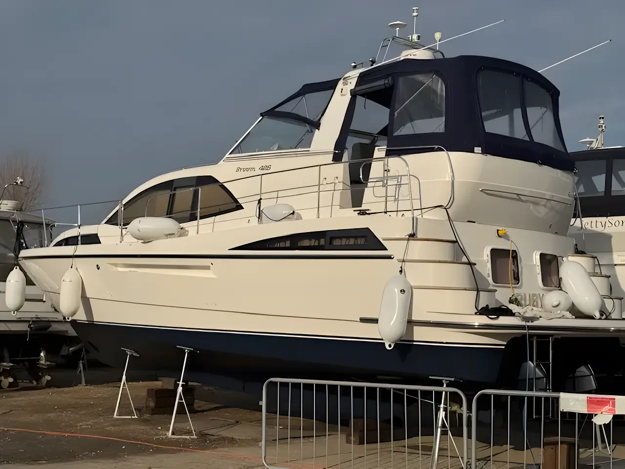 The Broom 425 has our latest concept in styling with frameless windows and steps both sides of the transom.