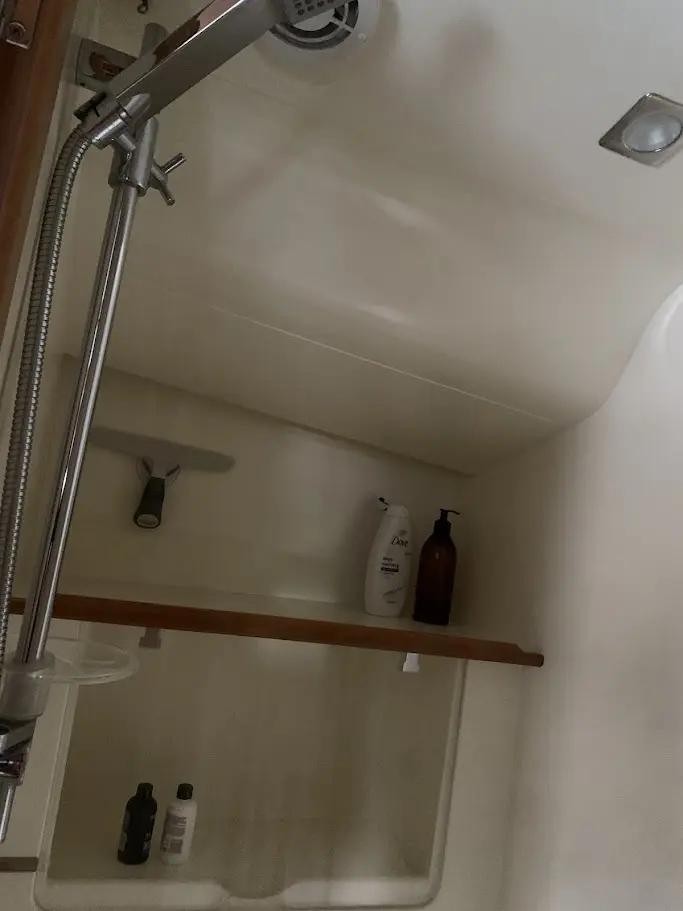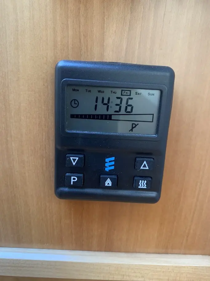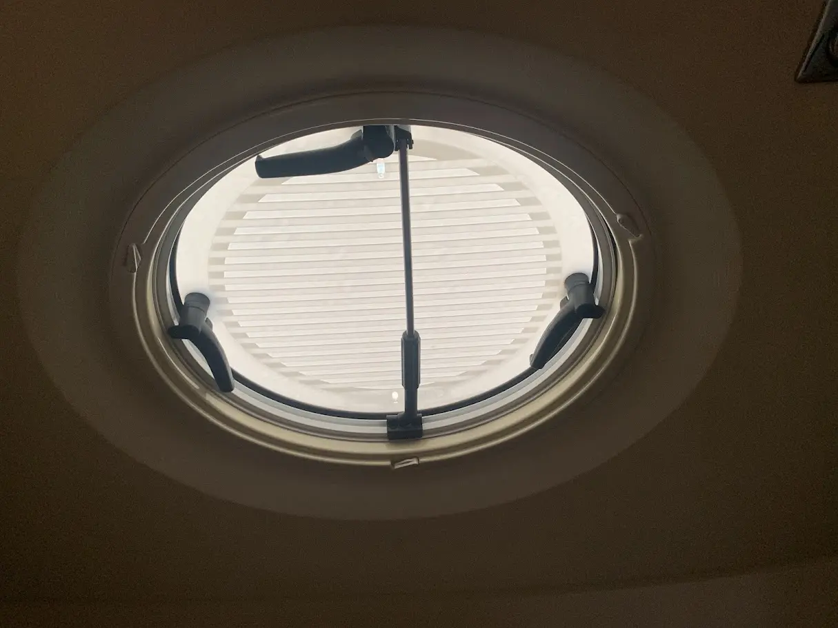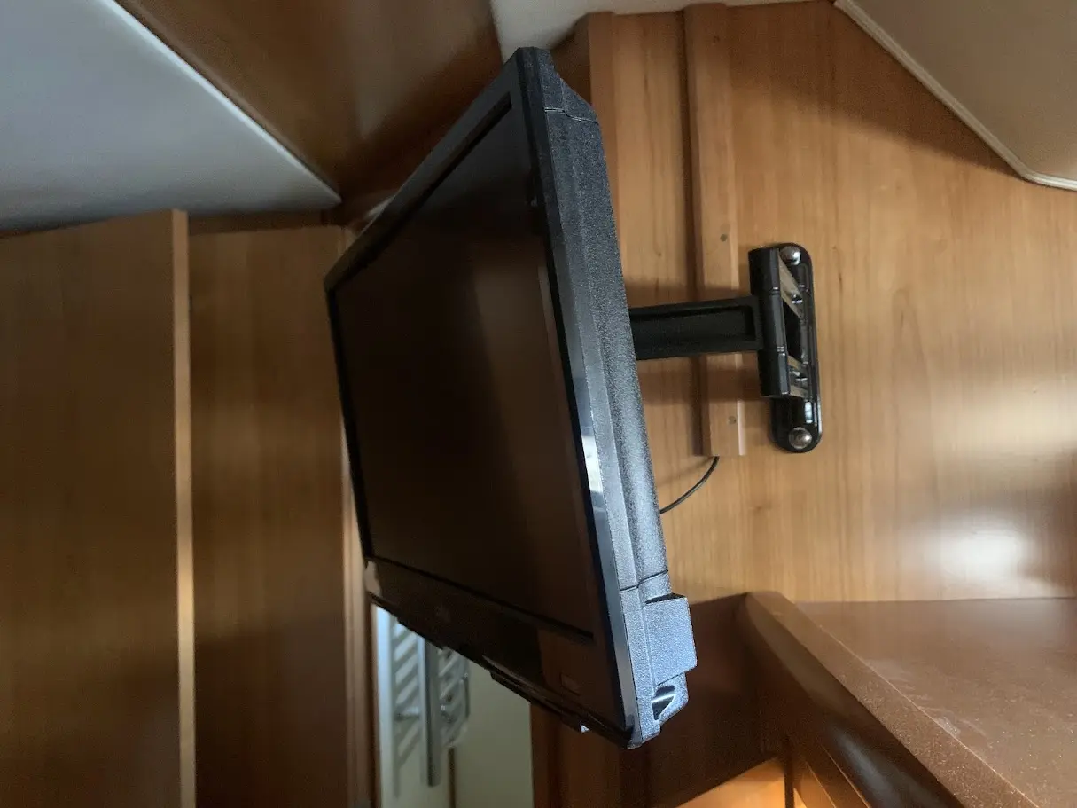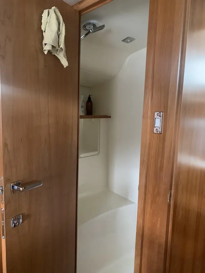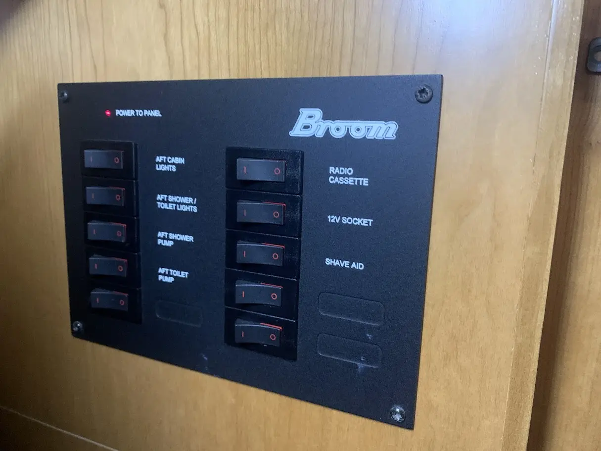 Aft Cabin: large double berth with storage underneath, Oceanair blinds fitted to 2x portholes giving complete blackout in the room, custom blinds and curtains throughout, huge amounts of cupboard/drawer storage, automatic lights in closets, control panel in closet, Eberspacher control panel, Cello TV on pull out bracket, USB charging points, LED lighting, seperate shower room with plenty of space, seperate head with electric flush toilet with waste tank and macerator discharge, heated towel rail in head, Corian worktop in head, LED lighting in head.
