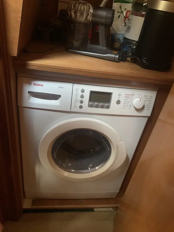 Saloon: upholstery in premium leather, saloon table that extends, adaptable dinette to double berth, blinds to all windows including forward a angled drops, LG LED TV, high power stereo and 4 speakers, Bosch washer/dryer with large storage area above, Eberspacher control panel, USB charging points, plenty of storage throughout including built in bottle / drinks storage, beautiful woodwork finishes throughout, LED lighting on internal steps.