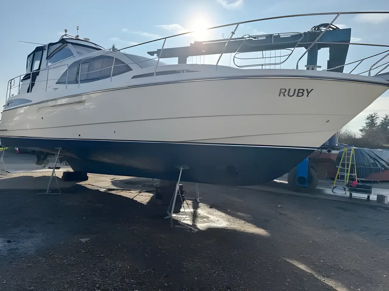Fitted with 2x Volvo Penta D6-370hp diesel engines. Out the water for hull polish, antifoul and anodes changed Feb 2025. Ready to go for this season. Boat safety certificate until May 2028. E.A. river license.