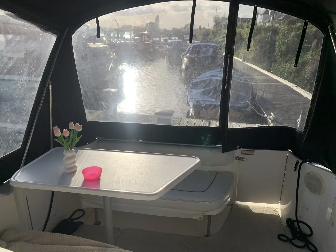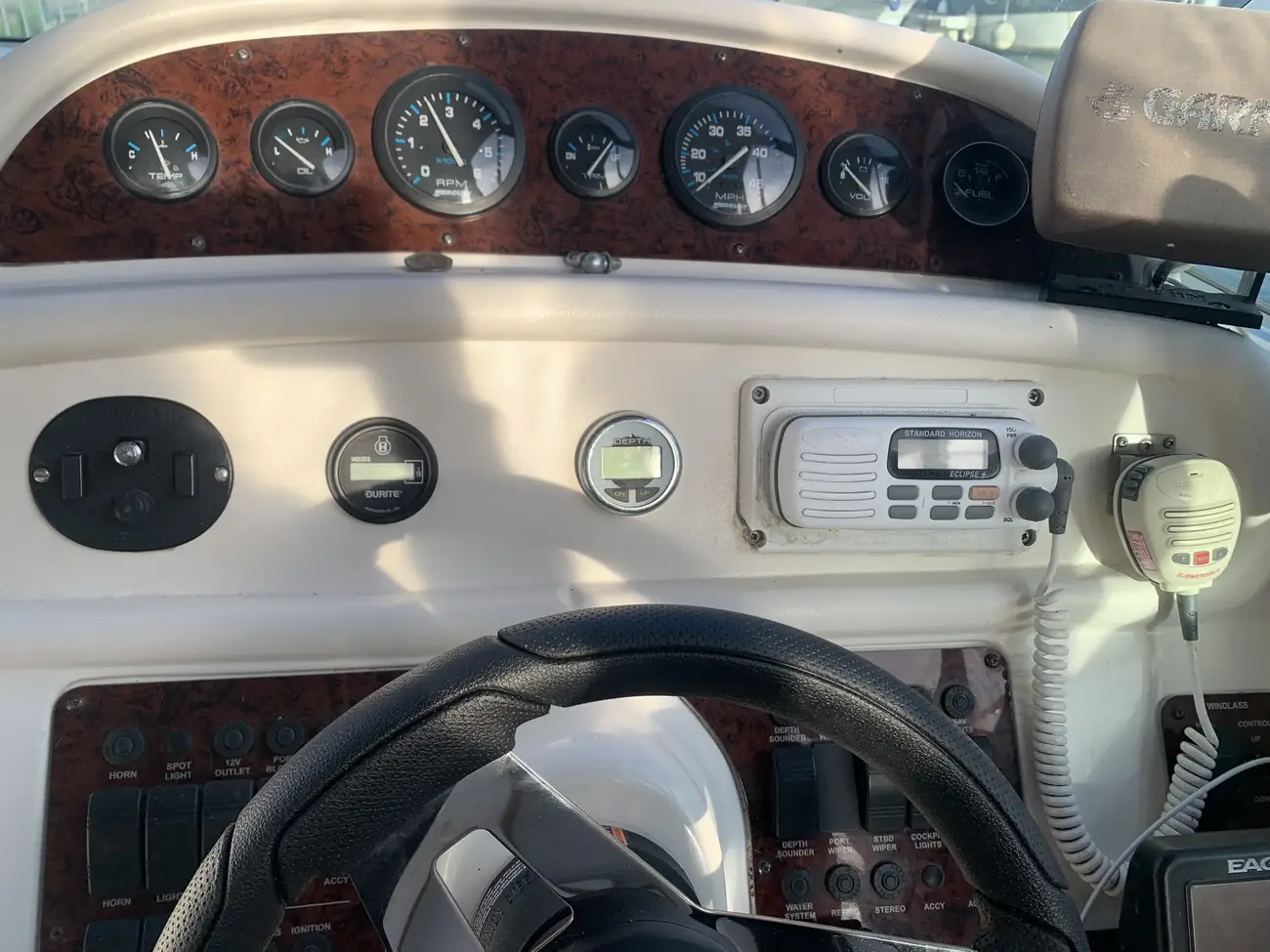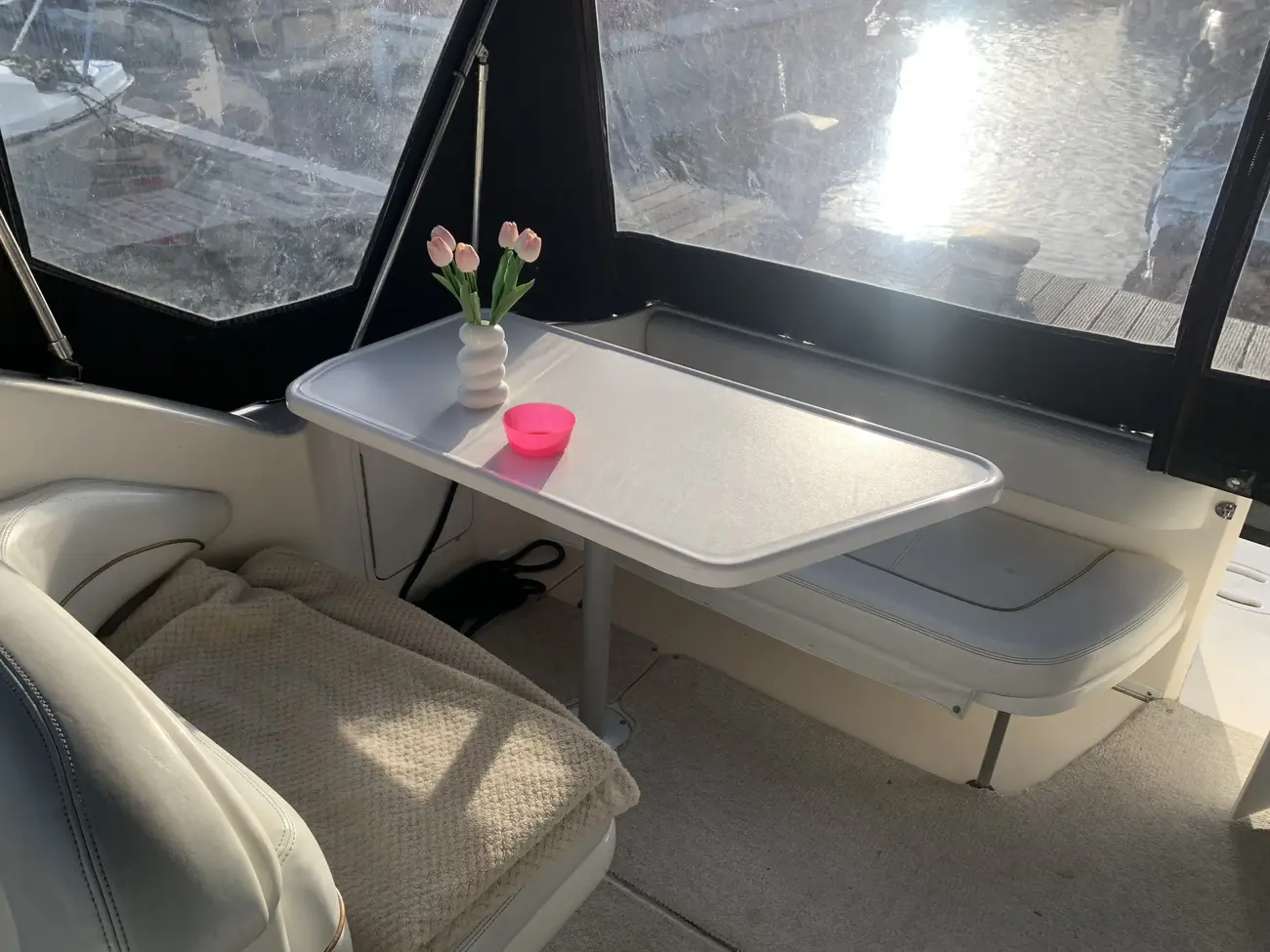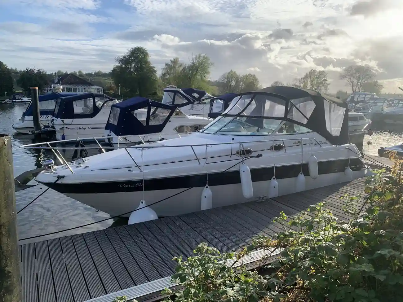 A great example of this spacious sports cruiser with many recent upgrades and improvements including; new stereo, new steering wheel fitted April 2026. Full out the water engine and drive service, antifoul, compound and polish, new anodes, band wrapped in striking black, new battery charger Jan 2026. New water pump, new fenders and ropes, new navigation lights Sept 2025. New cockpit carpet recently fitted.