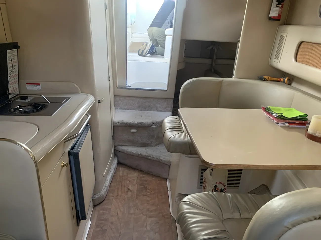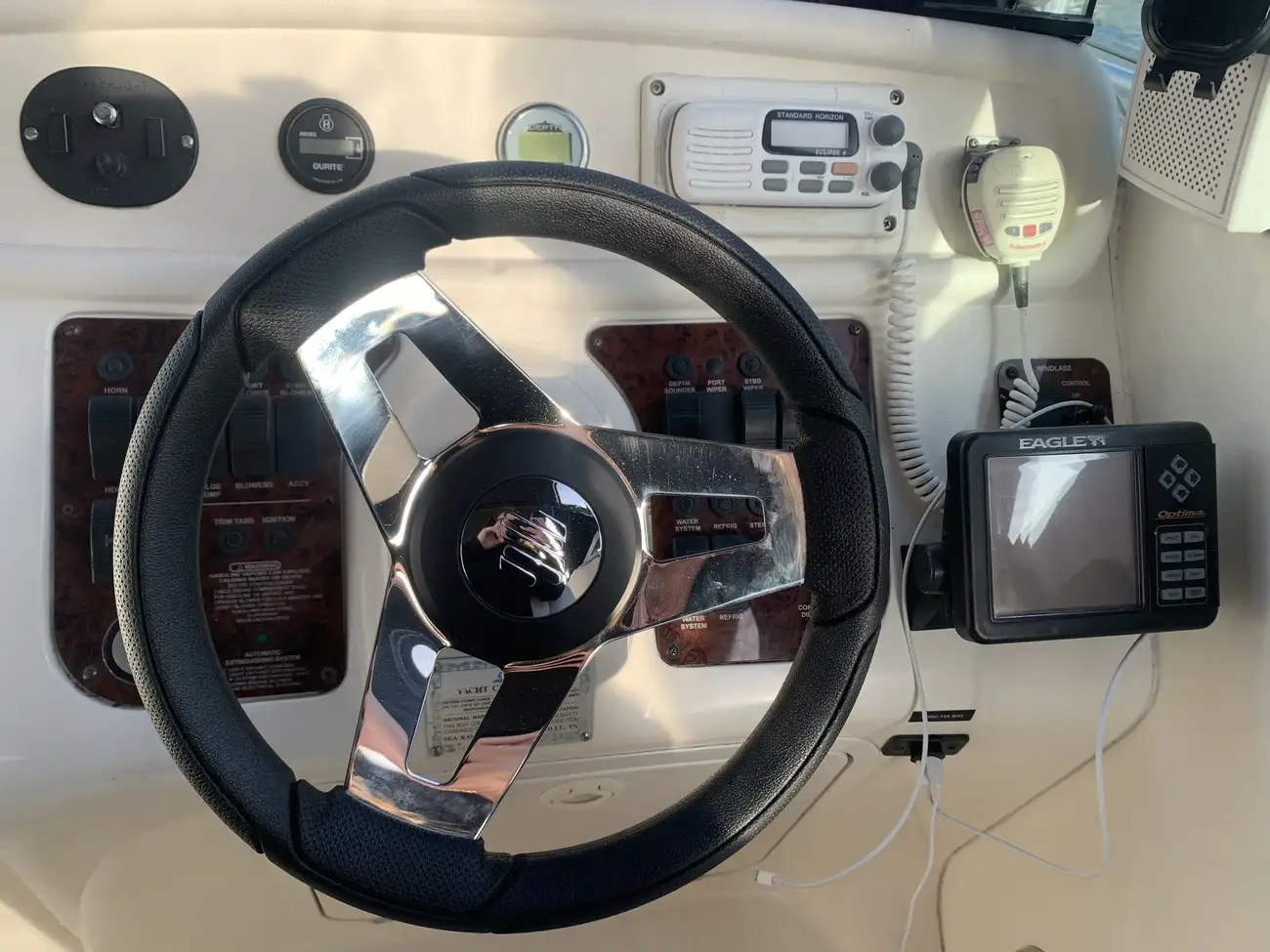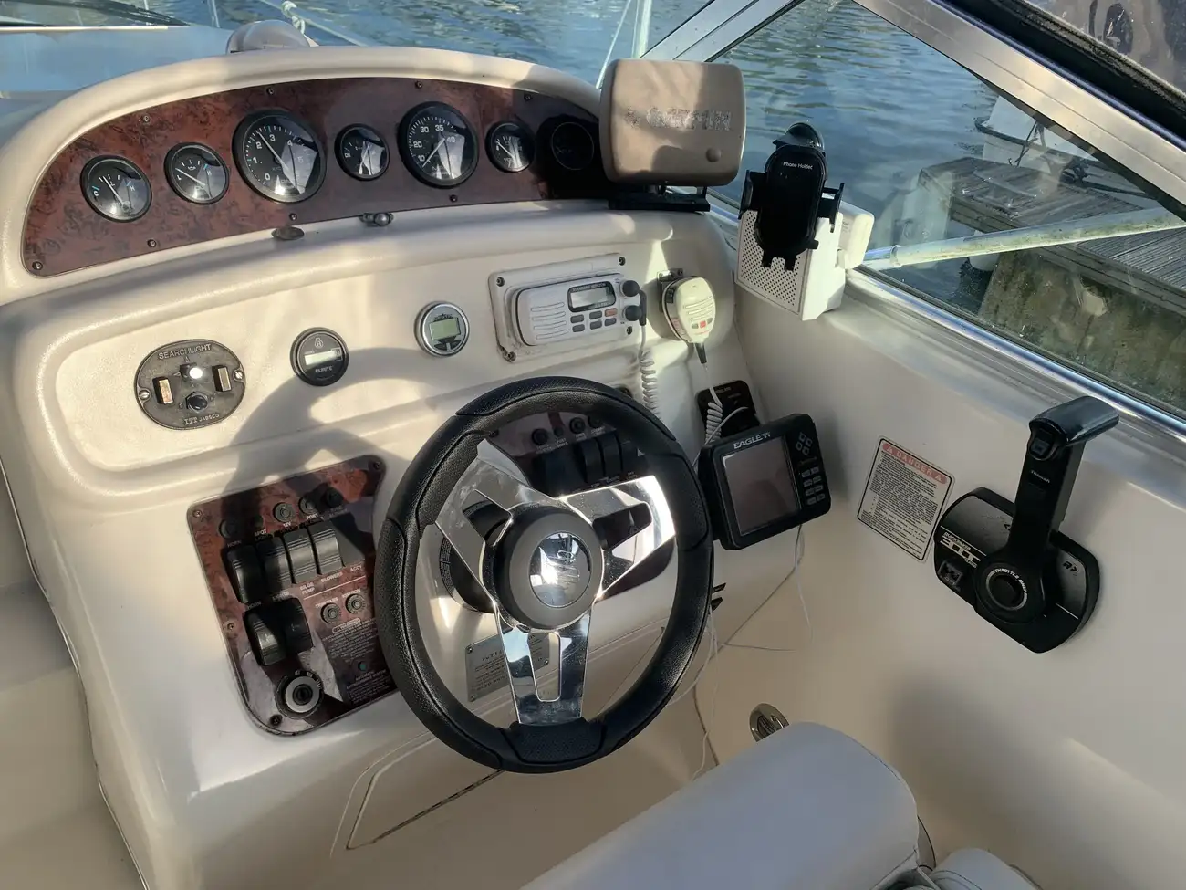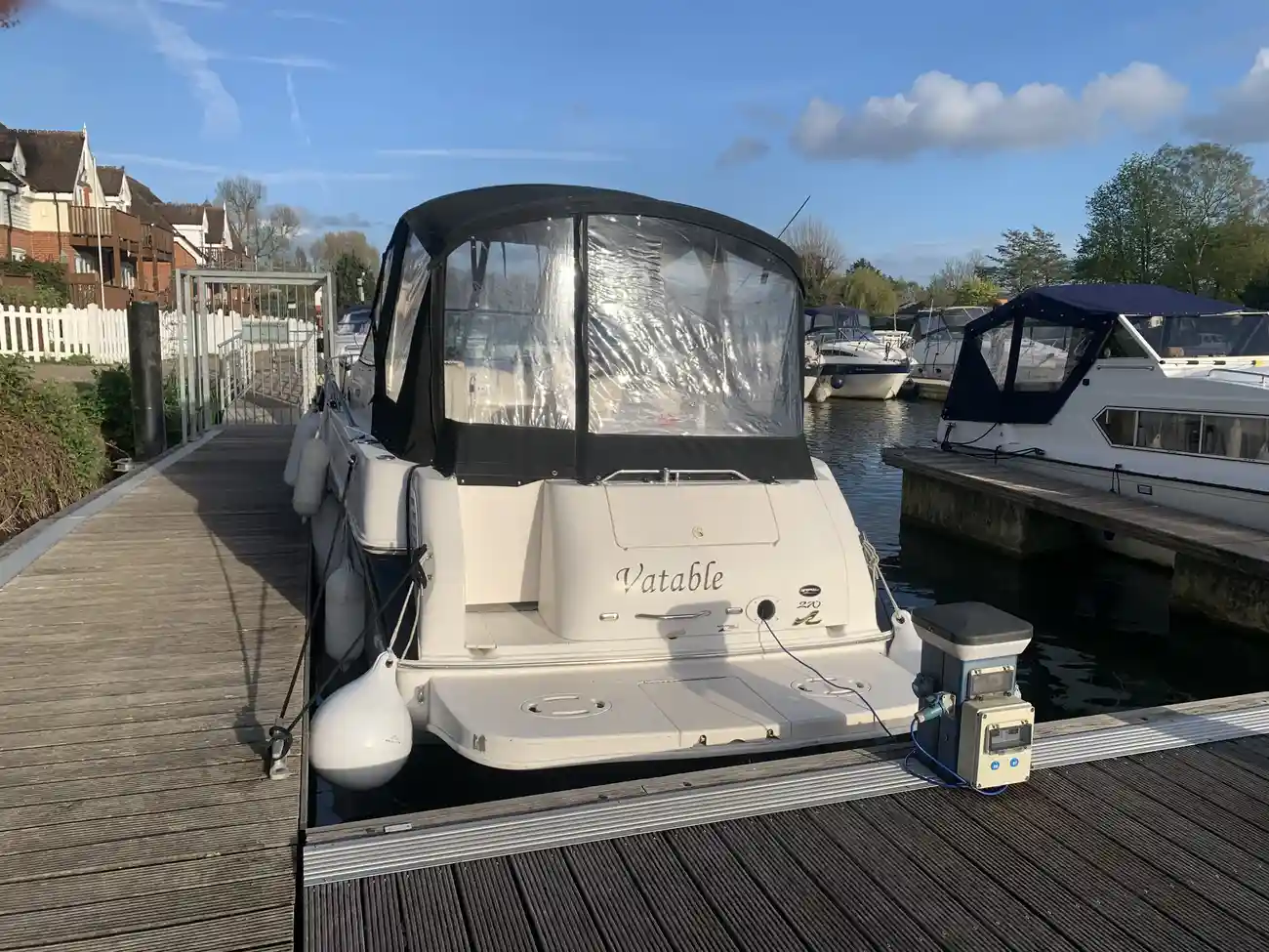 A great example of this spacious sports cruiser with many recent upgrades and improvements including; new stereo, new steering wheel fitted April 2026. Full out the water engine and drive service, antifoul, compound and polish, new anodes, band wrapped in striking black, new battery charger Jan 2026. New water pump, new fenders and ropes, new navigation lights Sept 2025. New cockpit carpet recently fitted.