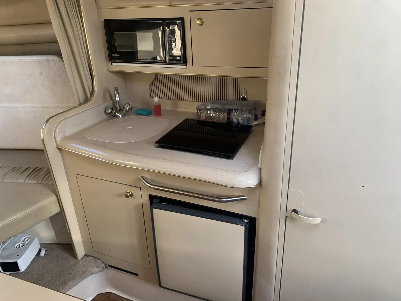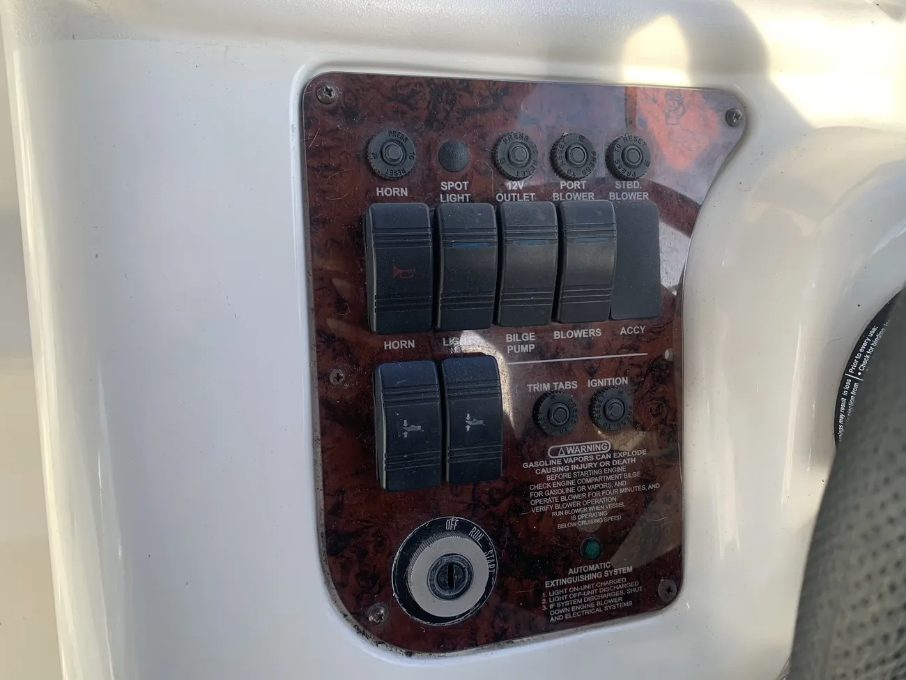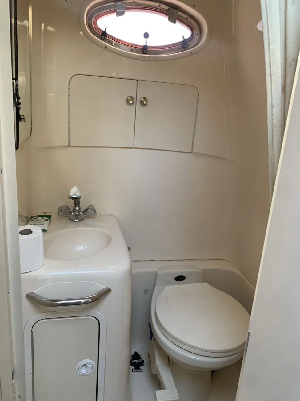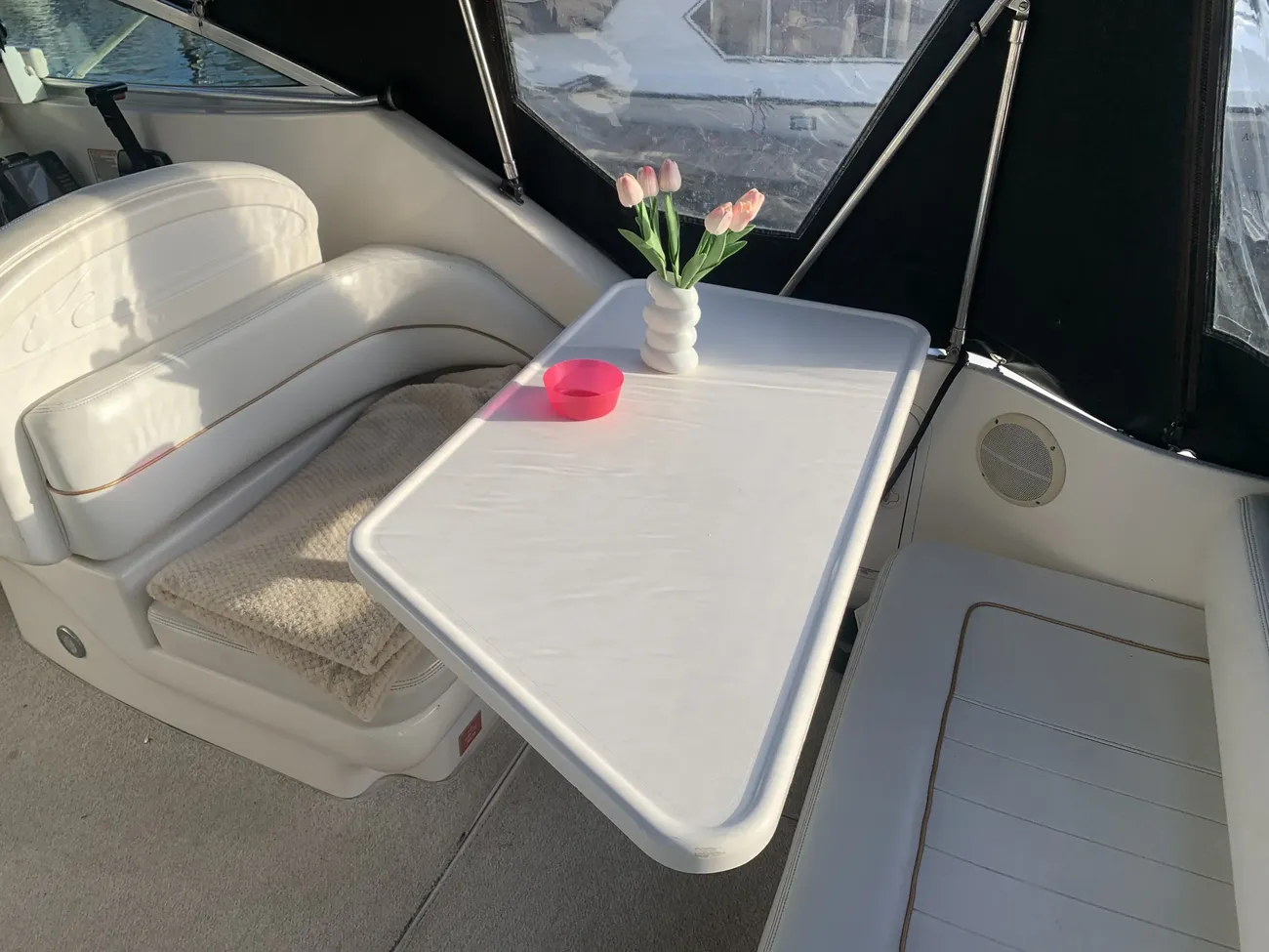A great example of this spacious sports cruiser with many recent upgrades and improvements including; new stereo, new steering wheel fitted April 2026. Full out the water engine and drive service, antifoul, compound and polish, new anodes, band wrapped in striking black, new battery charger Jan 2026. New water pump, new fenders and ropes, new navigation lights Sept 2025. New cockpit carpet recently fitted.