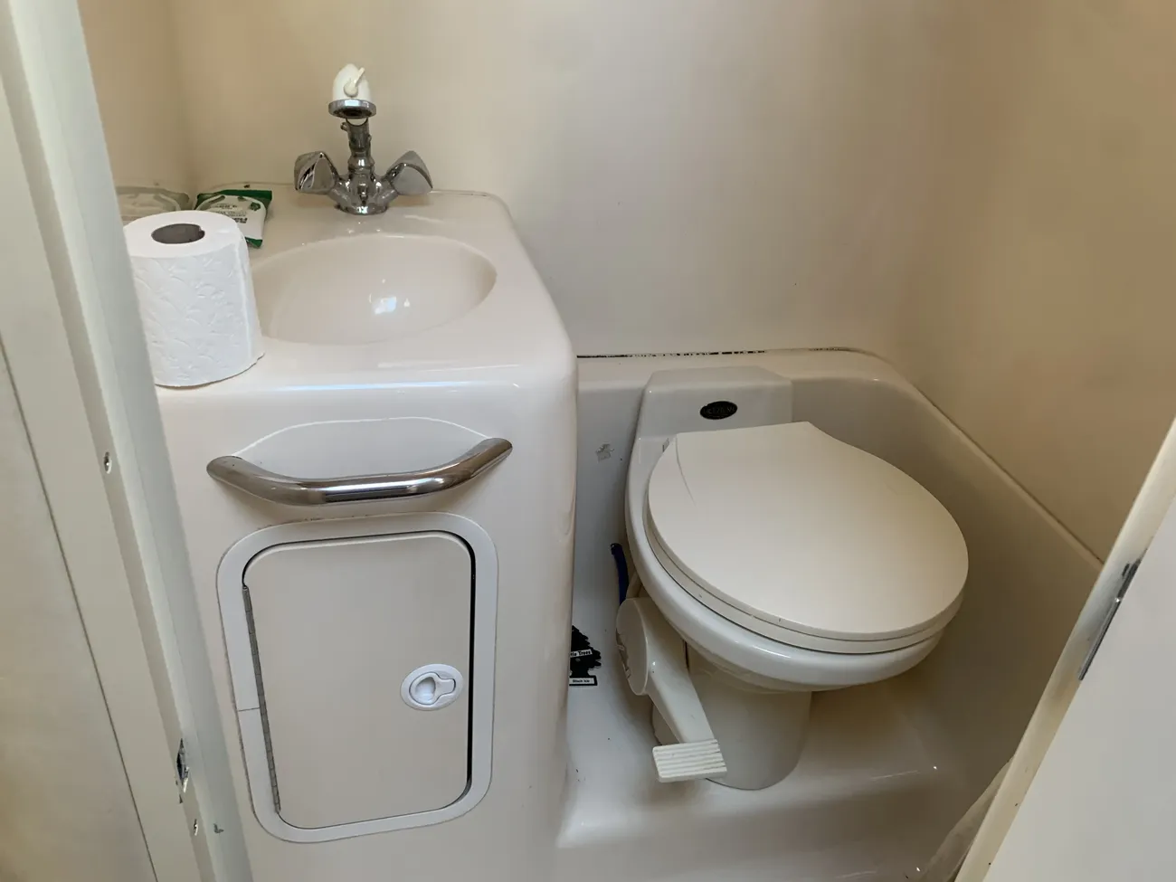 Fitted with many extras including: Cruisair air conditioning, full 240v shore support (battery charger, immersion heater, 240v outlets), remote control spotlight, gas hob, microwave, fridge with freezer compartment, vacuume toilet system, waste tank with deck & sea discharge, pressurised cold & hot water (via calorifier), ruched leather interior upholstery, radio/CD multichanger & 4 speakers and more.