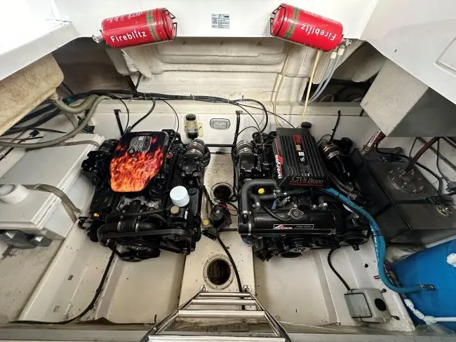 EngineEngine manufacturer: Mercruiser, Engine model: 5.7L V8, Engine quantity: 2, Horse power: 260, Hours: 825, Max speed: 31, Fuel: Petrol, Cruising speed: 25, Drive type: Z Drive