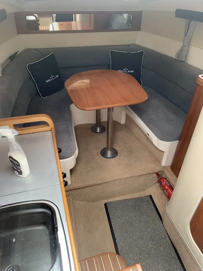 The Sealine S23 offers comfortable accommodation, featuring a forward cabin with U-shaped saloon table that forms double berth conversion, a seperate double berth is located in the aft cabin and there is a seperate head with toilet and shower. The cockpit also provides ample seating for socialising, meaning the boat has everything you would need for family days out or weekends away.